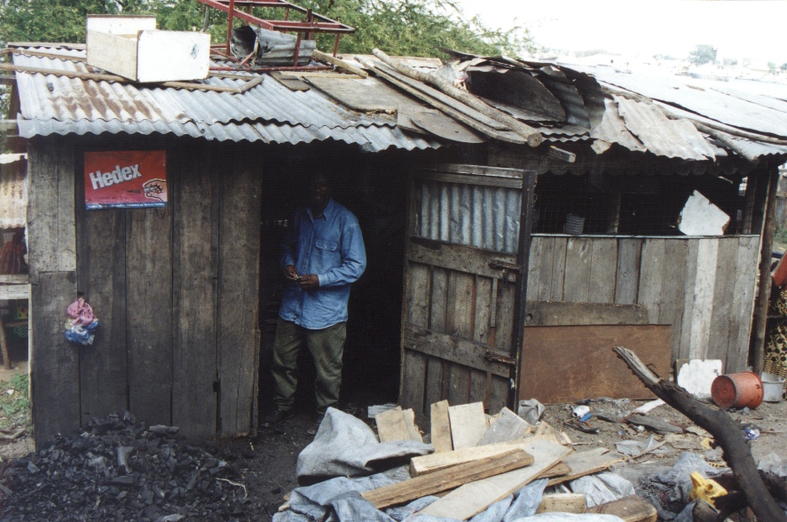 J'avais déjà rencontré Sam le premier jour et mon espoir secret était d'une part de le retrouver, et d'autre part qu'il soit mon guide. C'est lui qui m'a reconnu et nous avons entammé une nouvelle conversation autour d'un verre. Lorsque j'ai parlé de mon projet de « reportage », Il s'est tout de suite proposé de me servir de guide, abandonnant pour quelques heures son commerce de charbon de bois (photo) à son associé.