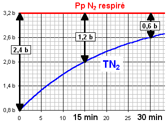 Lorsque la PpN2 respiré est supérieure à la TN2 dissout dans un tissu, celui-ci se sature en azote.
